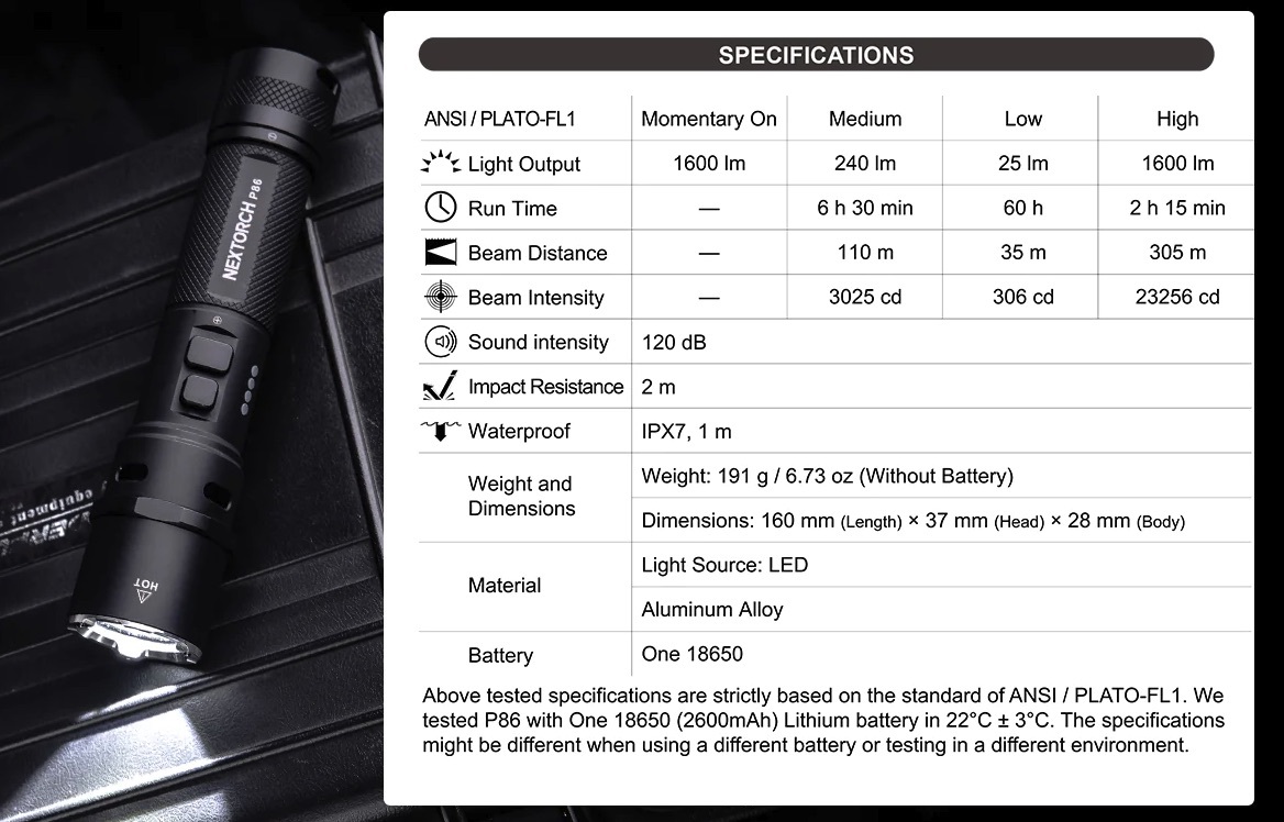 標準裝連18650 2600mAh 充電池, Type-C USB充電線, 手繩, 說明書