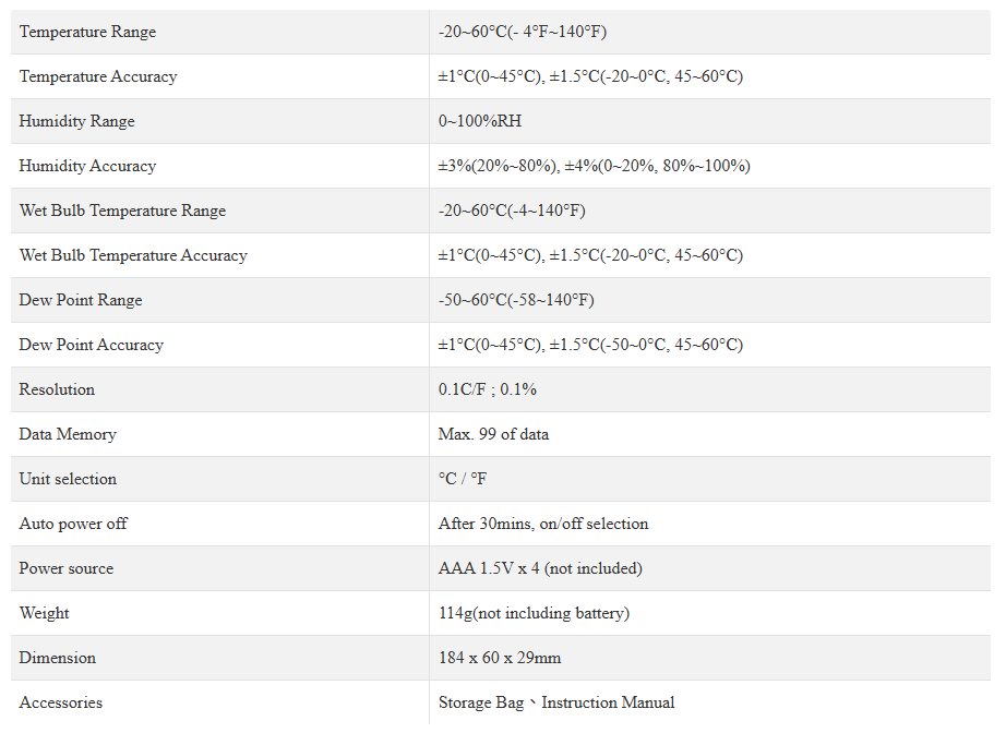 Tests ambient temperature, relative humidity, wet Bulb, dew Point temperature